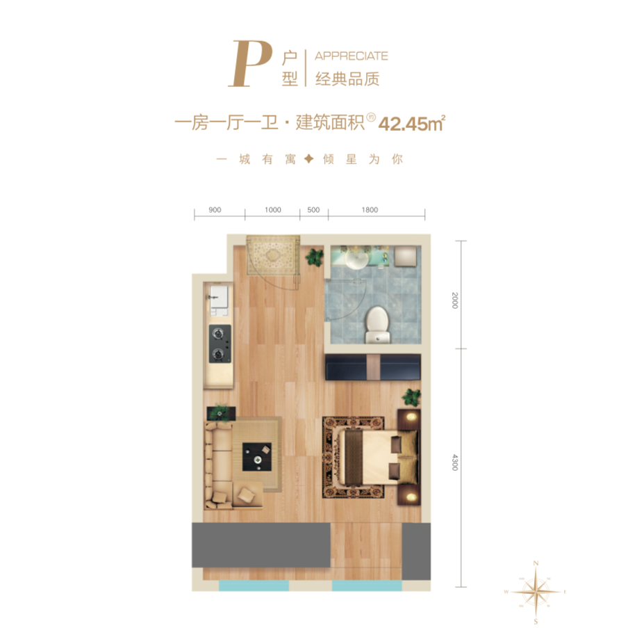 建面:42.45 ㎡ 12000 元/㎡